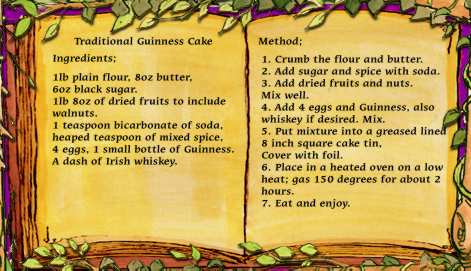Mrs Fogarty leads you over to her recipe book and allows you to take a peek at her Guinness Cake Recipe.